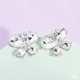 A silver butterfly with white teardrop gem wings in varying sizes, seemingly float at the ear for a whimsical finish. Dainty white rhinestones create the butterfly's antenna for additional dainty sparkle. Earring attaches to a standard post fitting.